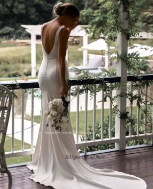 SoDigne Satin Simple Mermaid Wedding Dresses V-neck Sleeveless Elegant Bridal Dress Split Long Bride Gown vestidos de novia