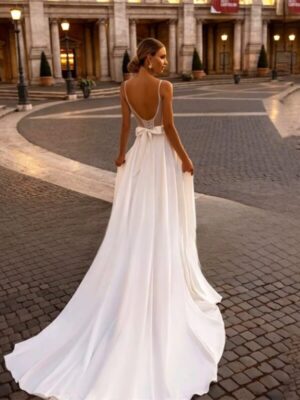 Elegant Wedding Dress For Woman Sweetheart-Neck A-Line Spaghetti Straps Open Back Bride Gown Train Vestidos De Novia Customized