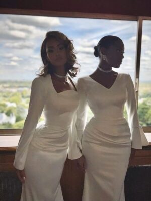 SoDigne A-line Elegant Wedding Dresses V-neck Full Sleeves Stain Bridal Dress Long Bridal Gown vestidos de novia 2025 Customized